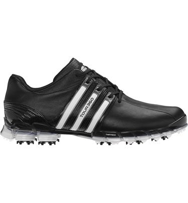 adidas Men's Tour 360 ATV Golf Shoes - Black/Black/White The adidas Men's Tour 360 ATV Golf Shoes utilize unrivaled forefoot flexibility and zonal traction elements to provide all-terrain versatility, comfort and grip that adapts to any surface, lie, or angle. THiNTech technology provides a lower center of gravity so that you end up with increased stability, better balance, and improved power transfer. 360 WRAP locks in and supports the foot for enhanced stability and a secure fit, while FitFOAM insoles provide ever-lasting cushioning, support and comfort. Additional features: Premium full-grain leather upper provides a rich look and feel 360 wrap for enhanced stability and a secure fit Ten-spike configuration with THiNTech low-profile technology for improved traction and stability Ground-adapting outsole provides all-terrain versatility FitFOAM insole provides ever-lasting cushioning, support and comfortadidas Men's Tour 360 ATV - Black/Black/White Golf Shoes